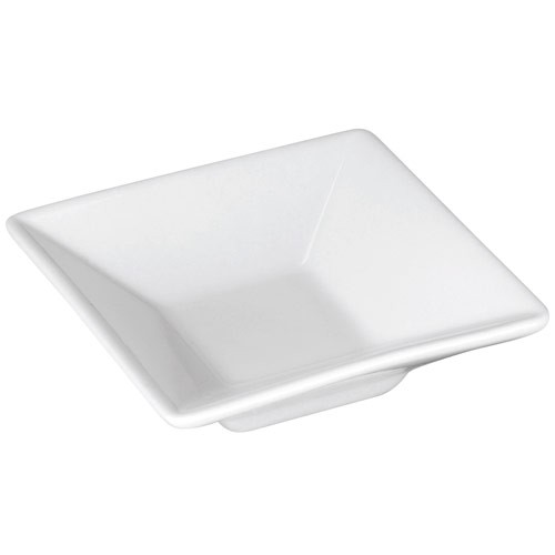 Miniskål fyrkantig för såser, soya m.m. Vit i storlek 7x7x2 cm.