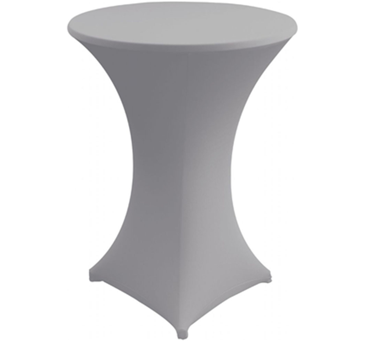Vit ståbordsduk som täcker hela bordet. Elastiskt material.